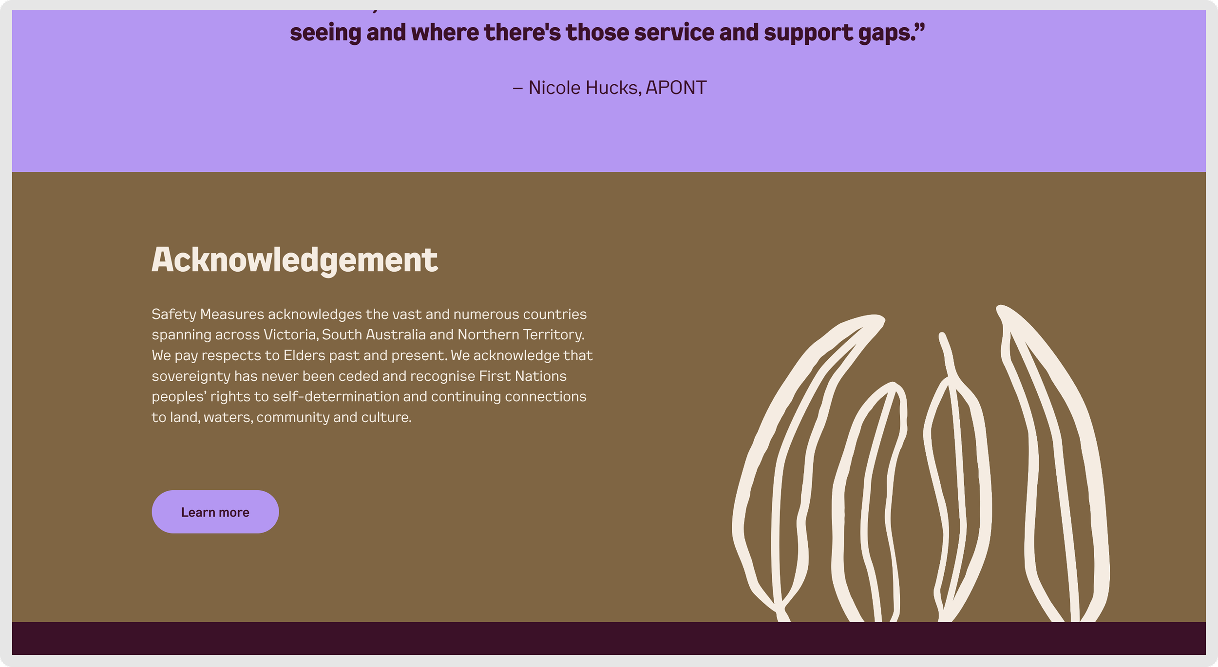Website design and build in collaboration with For Good Digital. safetymeasures.org.au WORK Safety Measures Nura Mondo Grove Psychology Jade Lillie Good.Co